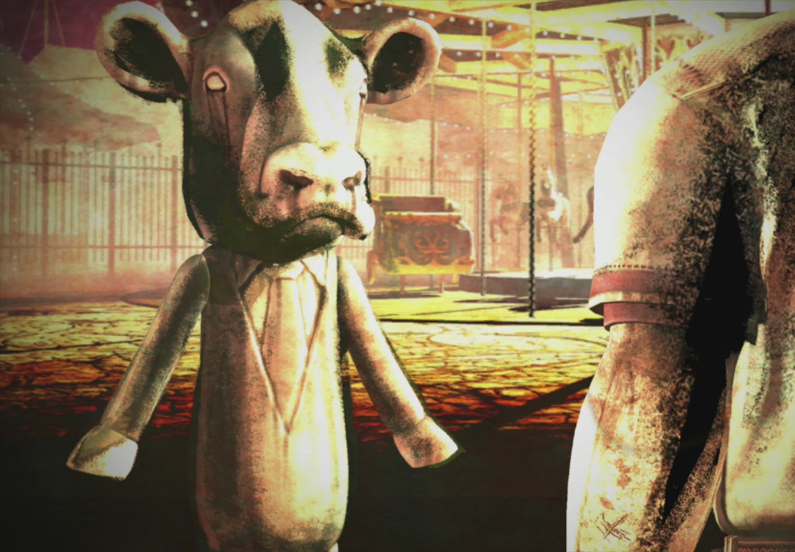 Dreamland guidance member is a character in the video game Diabolical Pitch. He is an anthropomorphic cow and the only doll friendly to Nigel McAllister in Queen Christine's Dreamland. The guidance member greets McAllister upon arrival and grants him a bionic arm when he notices the pitcher's shoulder injury. While McAllister sought out Queen Christine's Dreamland to grant this wish, the guidance member indicates that "all dreams come with a price," and proceeds to guide McAllister through a number of attractions where he must put his new arm to the test against a horde of hostile dolls.