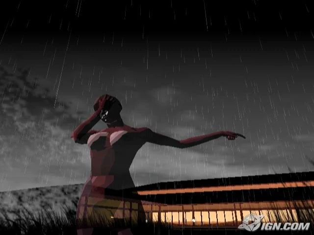 Mizaru is depicted as a woman wearing a dark-red bodysuit, similar to Iwazaru's, but with long lace-up boots; she is always covering her eyes with her right hand in accordance with her name, which roughly translates to 'see no evil'. KAEDE Smith can summon her at certain points during the game by creating a blood shower, whereupon Mizaru will appear, point strangely at an invisible barrier without looking at it, and shatter it before disappearing. Beyond her description in hand in killer7 as 'KAEDE's servant', her personality and background are left completely unexplored.